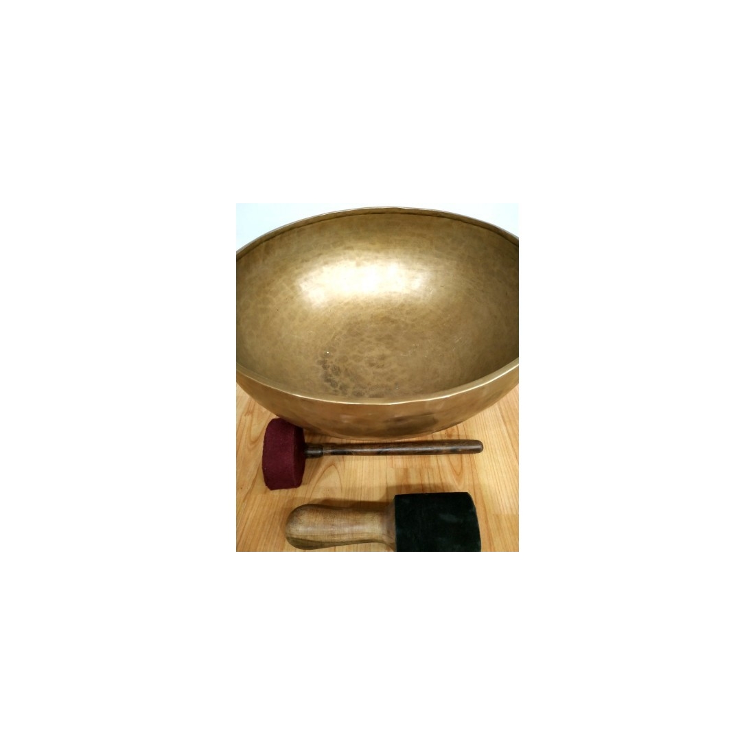 El cuenco Jambati es de gran profundidad tanto en el giro como en el golpeo con la maza, tiene un sonido y vibración que se mantienen largamente en el tiempo; se presente acompañado de juego de baquetas y cojín.